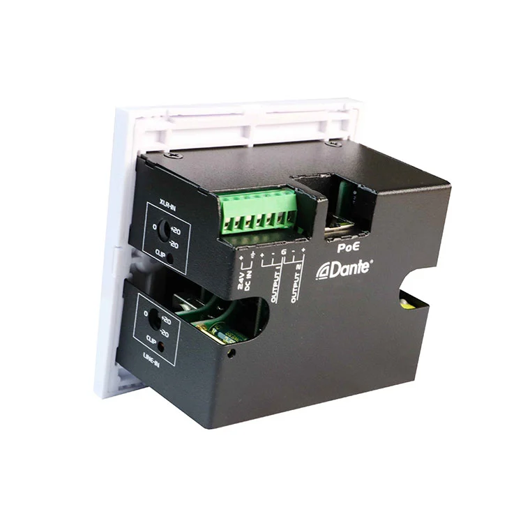 A Dante interfész panel, amely két Dante hálózati csatornát konvertál analóg audio kimenetekké és két analóg audio bemenetet Dante jelekké. Két verzióban kapható-DWP22L-USA (kompatibilis az USA dupla gang hátsó dobozaival) és a DWP22L-EU-ban (az európai hátsó dobozokhoz tervezték)-ez a panel biztosítja a zökkenőmentes integrációt az audio beállításához. Egyszerűen csatlakoztassa a CAT5 kábel segítségével az Ethernet kapcsolóhoz, és a Dante Controller segítségével irányítsa az alacsony késleltetésű audio jeleket a hálózaton keresztül.